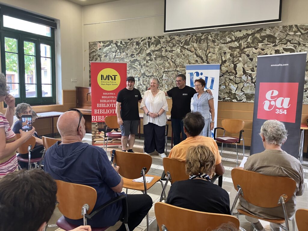 experiències. Durant aquesta primera xerrada, amb les parades acabades de preparar, Xavier Vernetta, Josep Tort, Rosa Nogué i Mercè Foradada van explicar com s’ho fan per publicar i promocionar els seus llibres i quina perspectiva de futur veuen en el seu ofici. Tots quatre van coincidir en el fet que un dels punts essencials de la seva feina és la de poder-la compartir, precisament, amb altres escriptors i escriptores i amb la gent que els llegeix. Per aquest motiu van convenir que l’organització d’actes i jornades com el mateix Riudelletres haurien de formar part de la idiosincràsia de la literatura catalana per arribar a més gent i per animar tothom a llegir literatura en català.